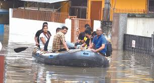 The city of Guwahati has been grappling with severe flooding following heavy rainfall that began on Monday night and continued into Tuesday morning. The downpour led to extensive waterlogging across various localities, with floodwaters rising from knee to chest level in several areas, severely disrupting daily life and transportation. Residents faced significant challenges navigating through submerged streets, highlighting the city’s vulnerability to rainfall-induced urban flooding.